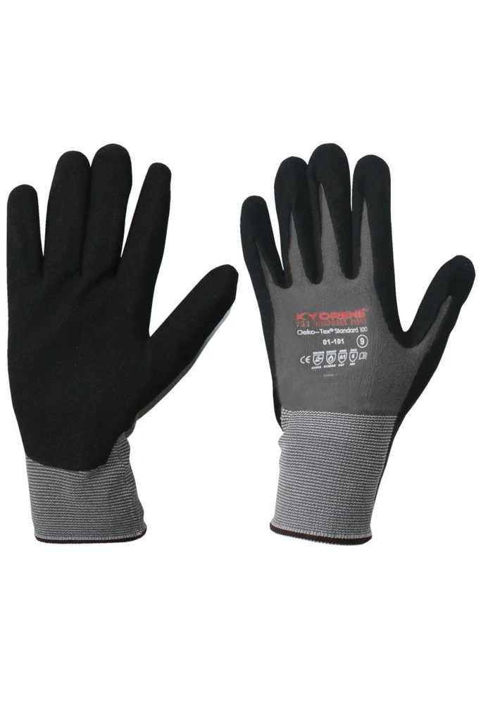 Protipořezové pracovní rukavice KYORENOVÁ vložka 15G, větraný hřbet, úpletové manžety, máčené v nitrilu; Charakteristika: robustní; Výhody: pohodlí, přesné uchopení, citlivost, přesnost, odolnost proti řezu; Oblasti použití: manipulace s ostrými, suchými nebo mírně naolejovanými předměty a jejich montáž