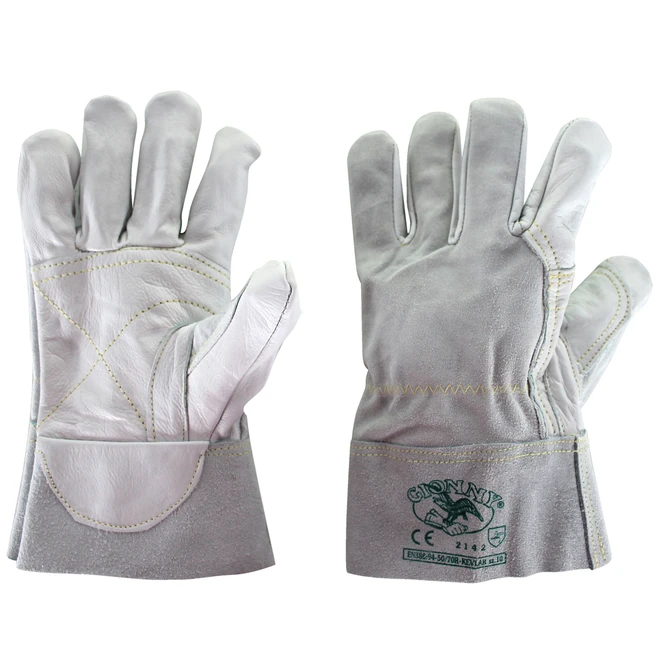 Oblasti použití: obecná manipulace v suchu; Horní část z dělené kůže, vyztužená dlaň a palec, ochrana palce, kožená manžeta, měkké, silné, odolné, pohodlné, snadné použití