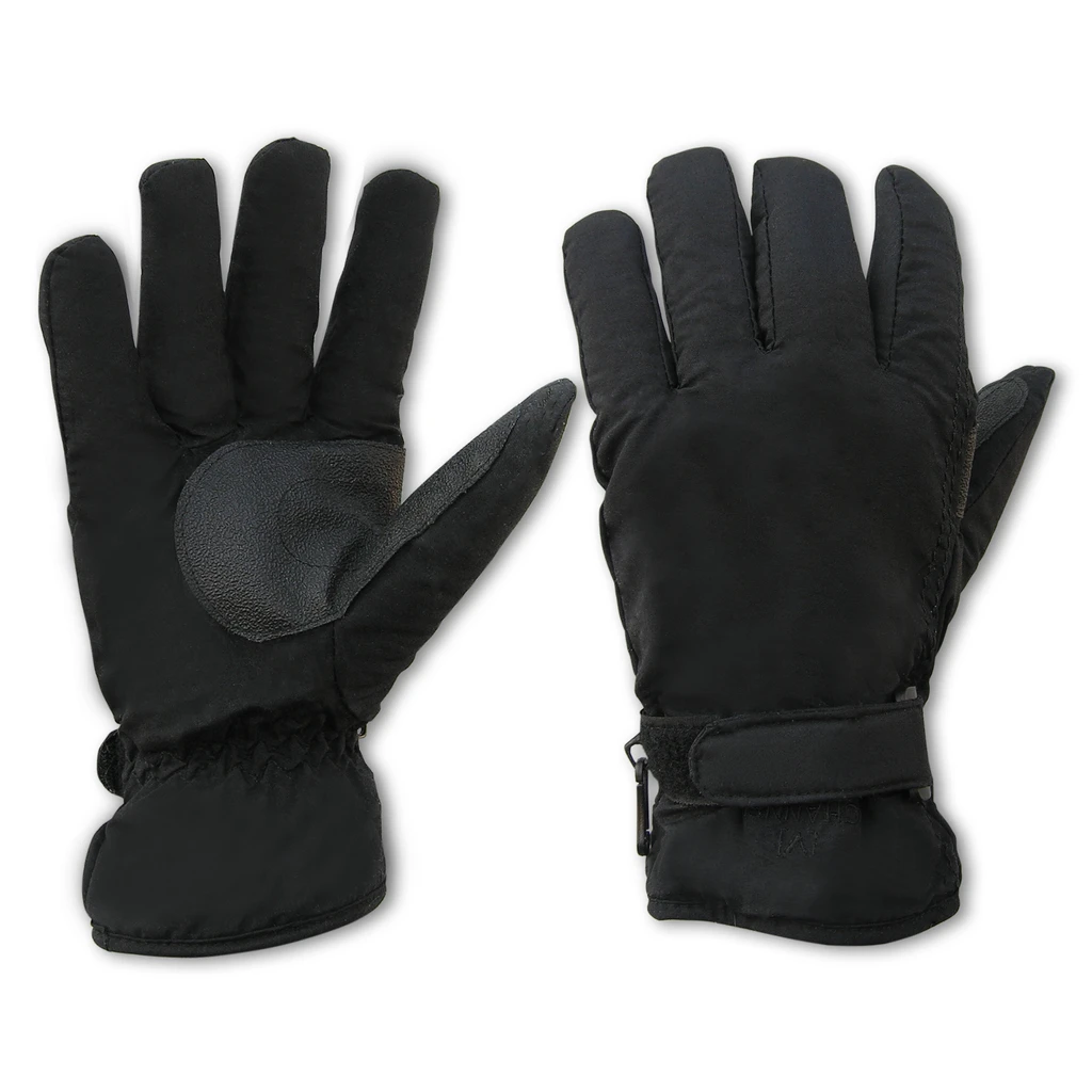 Nylonové rukavice s výztuží z PVC, vyztužená dlaň a palec, nepromokavé, stahovací páska na zápěstí se suchým zipem, textilní flísová podšívka; Charakteristiky: měkké, robustní, odolné, zimní; Výhody: pohodlí, uchopení, obratnost; Oblasti použití: všeobecné manipulace i se sněhem