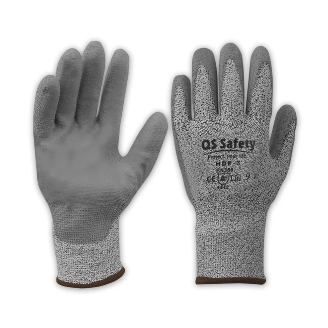 Oblasti použití: k manipulaci s řeznými, suchými nebo mírně mastnými předměty; Odvětrávaná zadní část, pletená manžeta, potažené polyuretanem, bytelné, pohodlné, pevné uchopení, odolné proti pořezání