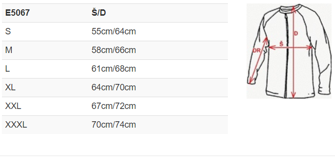 | Velikost | S, M, L, XL, 2XL, 3XL |