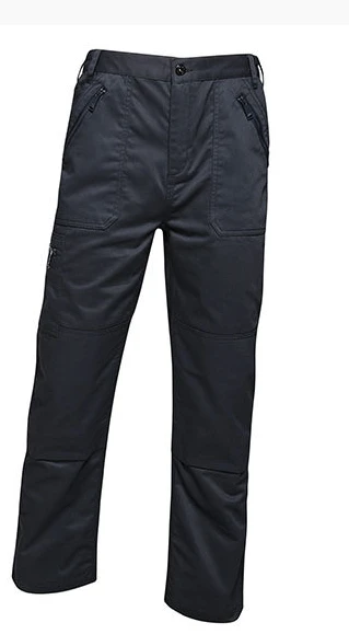 Odolná tkanina, odolná vodoodpudivá úprava, částečný elastický pas s poutky na pásek, zapínání na kovový knoflík a zip, zesílený šev v rozkroku, 2 přední kapsy, 1 s malou kapsičkou na mince, vícenásobná kapsa na zip, 1 boční kapsa na zip, 2 zadní kapsy, kapsa na kolenní chrániče, zesílené švy s trojitým prošíváním
