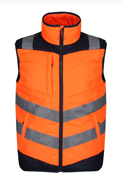 Nepromokavá polyesterová tkanina Hydrafort, EN ISO 20471:2013 + A1:2016 třída 2, oranžová také splňuje RIS-3279/TOM, tepelná izolace Thermo-guard 140 g/m², 1 náprsní kapsa na zip a 2 spodní kapsy na zip, reflexní šikmý cikcak vzor