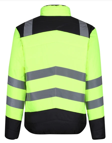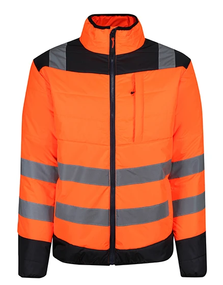 Nepromokavá polyesterová tkanina Hydrafort, EN ISO 20471:2013 + A1:2016 třída 2, oranžová také splňuje RIS-3279/TOM, izolace Thermo-guard, 2 spodní kapsy na zip a 1 náprsní kapsa na zip, reflexní šikmý cikcak vzor