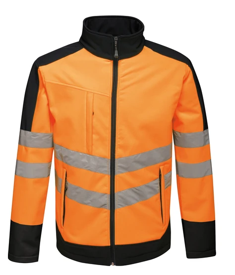 Teplá tkaná nepromokavá a prodyšná třívrstvá membránová látka z materiálu Softshell XPT, žlutá odpovídá normě ČSN EN20471 třída 2, oranžová barva vyhovuje normě RIS-3279/TOM, 2 spodní kapsy na zip, nastavitelný lem pomocí pružné šňůrky, po celé délce zip s ochranou vnitřního zipu a brady, 1 náprsní kapsa, výrobce zaručuje reflexní vlastnosti v souladu s normou EN pro 5 praní