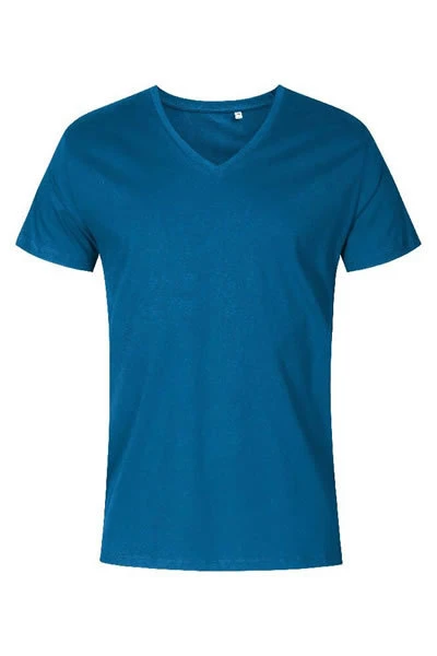 Jedinečné jednožerzejové tričko s výstřihem do V a límečkem z vlastní tkaniny je vyrobené z dlouhé základní česané bavlny. Zvláště hladký povrch a splývavá látka dodávají triku jedinečný, elastický a hedvábný povrch. Tričko má úzký střih a je vyrobené s bočními švy. Certifikováno podle OEKO-TEX®