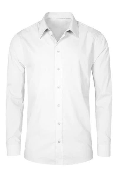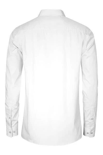 Klasická popelínová košile ze směsové tkaniny s dlouhým rukávem se zesíleným kent límečkem a knoflíkovým panelem s tónovanými knoflíky a také samostatnou náprsní kapsou a náhradními knoflíky. Specifické vlastnosti této košile: nastavitelná manžeta na 2 knoflíky (sudová manžeta), léga s dlouhým rukávem s knoflíkem, dvojité zadní sedlo, zahnutý lem, vyrobeno z česané bavlny s polyesterem. Košile má moderní