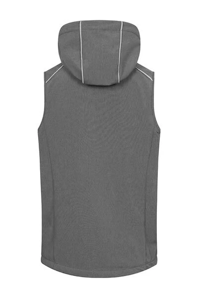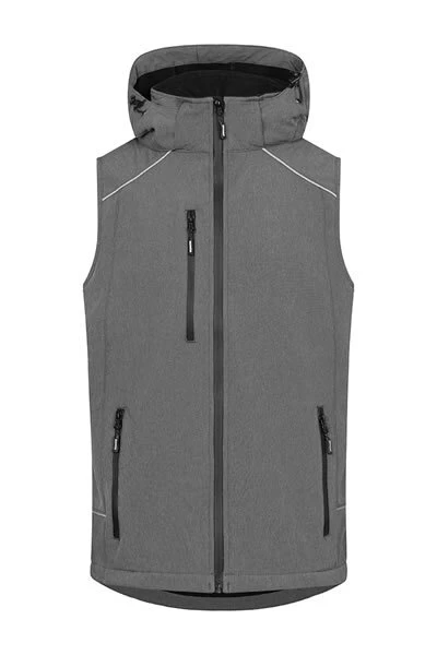 Funkční vesta s odnímatelnou kapucí s regulátorem objemu má voděodolné zipy, ochranu brady, kapsu napoleon, tunýlkovou stahovací šňůrku na lemu se zarážkami na šňůrku uvnitř, delší zadní díl s prohnutým lemem, dvě boční kapsy na zip, našitý kroužek na klíče v boční kapse, reflexní lemování a tahače zipů, panelové švy, štítek neutrální velikosti. Materiál vesty je prodyšný, voděodolný (8 000 mm). Vesta má moderní střih.