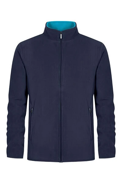 Dvouřadá fleecová bunda má celopropínací skrytý zip, úzké manžety s elastickým lemem a dvěma bočními kapsami na zip. Vnitřek bundy je v kontrastní barvě a je vyrobený z polyesteru s úpravou proti žmolkování na obou stranách. Fleecová bunda má úzký střih.