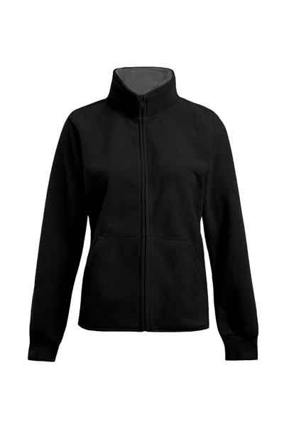 Dvojitou fleecovou bundu se stojáčkem a celopropínacím zipem ladí manžety rukávů s elastanem a průhmatové kapsy s ozdobným prošíváním. Vnitřek bundy je v kontrastní barvě a je vyroben z polyesteru s úpravou proti žmolkování na obou stranách. Fleecová bunda má moderní střih.