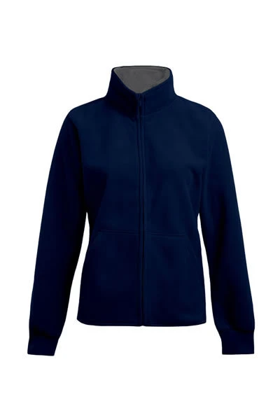 Dvojitou fleecovou bundu se stojáčkem a celopropínacím zipem ladí manžety rukávů s elastanem a průhmatové kapsy s ozdobným prošíváním. Vnitřek bundy je v kontrastní barvě a je vyroben z polyesteru s úpravou proti žmolkování na obou stranách. Fleecová bunda má moderní střih.