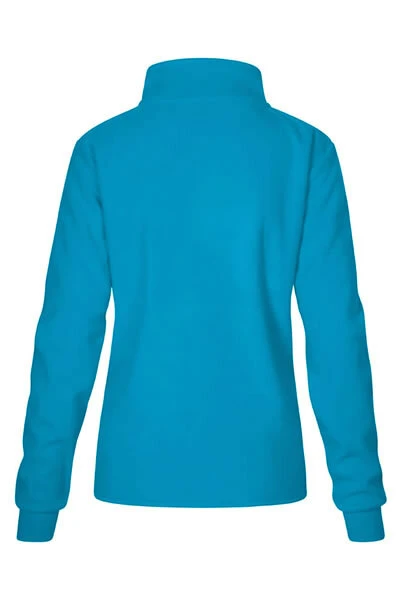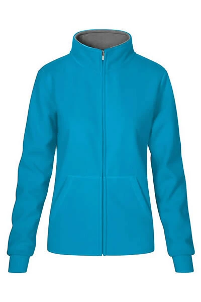 Dvojitou fleecovou bundu se stojáčkem a celopropínacím zipem ladí manžety rukávů s elastanem a průhmatové kapsy s ozdobným prošíváním. Vnitřek bundy je v kontrastní barvě a je vyroben z polyesteru s úpravou proti žmolkování na obou stranách. Fleecová bunda má moderní střih.