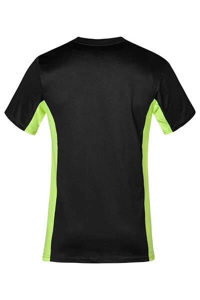 Funkční jednožerzejové triko je vyrobené ze směsové tkaniny s bočním dílem v kontrastní barvě. Tričko je šetrné k pokožce a rychle schne, je vyrobené z česané bavlny uvnitř a polyesteru zvenku. Tričko má unisex střih a boční švy.