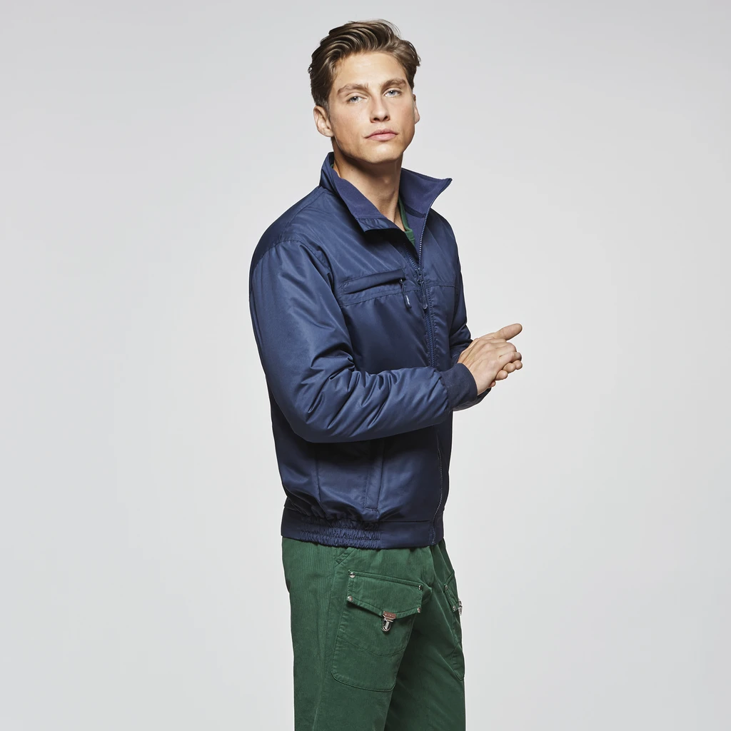 Vysoký límec, přední zip ve stejném tónu, ochrana brady, 3 vnější kapsy s klopou na zipem, vpravo náprsní kapsa, 2 boční kapsy, podšívka z microfleecu, manžety v 1x1 žebrovaném úpletu, vnitřní zip pro snadný přístup na tisk nebo výšivku, větruvzdorný a vodovzdorný materiál.