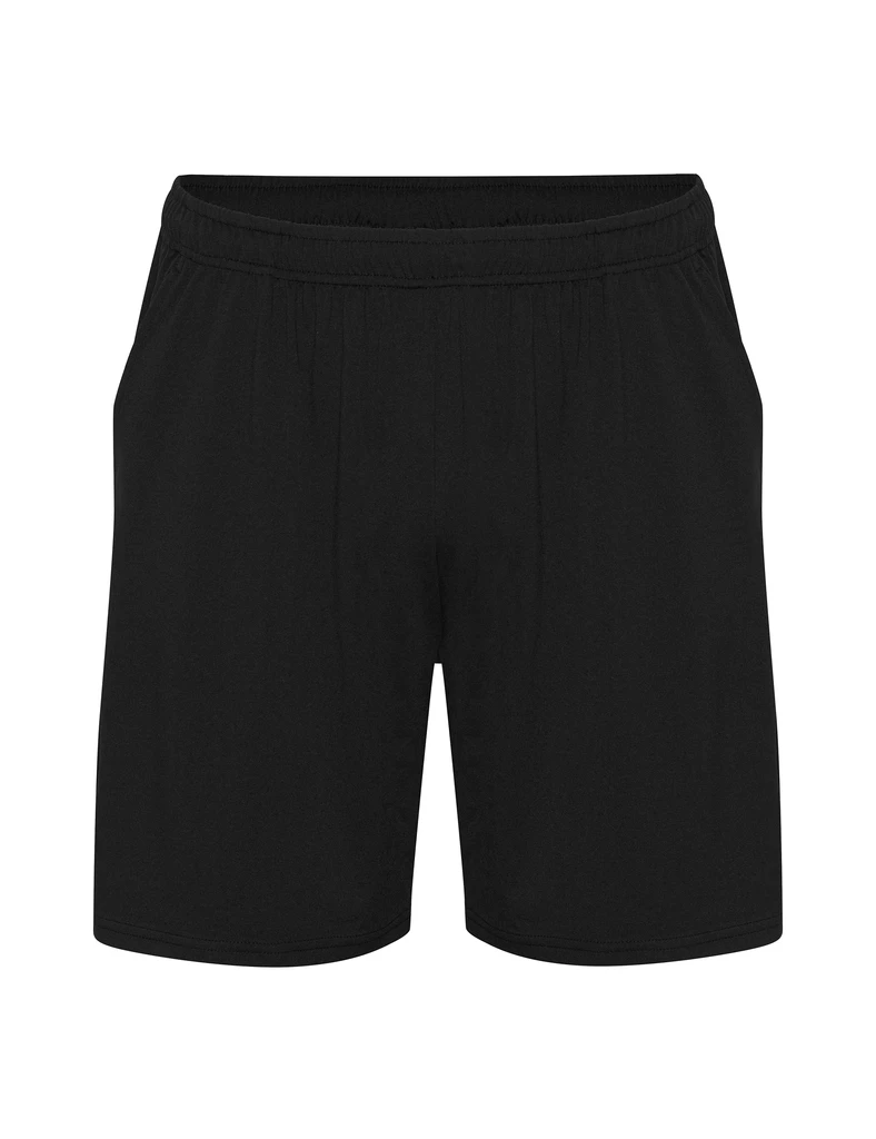 Unisex vypasované jednožerzejové funkční šortky s elastickým pasem s nastavitelnými šňůrkami uvnitř pasu. Obsahuje funkci Quick Wick, boční kapsy, malý detail rozparku na bocích a žádnou vnitřní síťovinu. Lehká kvalita 155 g/m2, vyrobená ze 100% recyklovaného polyesteru.