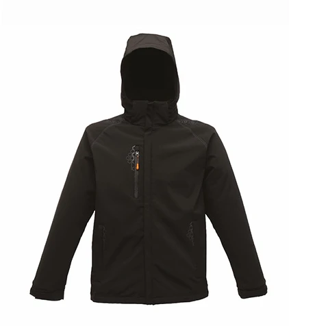 Softshell tkanina se zatepleným zadním dílem, odolná vodoodpudivá úprava, tělo podšité síťovinou, 2 spodní kapsy na zip a voděodolná náprsní kapsa, odnímatelná kapuce s regulací, nastavitelné manžety, nastavitelný lem stahovací šňůrky, skrytý vstup na zip v podšívce pro přístup k výšivkám