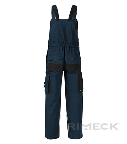 Retroreflexní páska v dolní části nohavic, multifunkční kapsy, zapínání na knoflíky v boční části, poutko na kladivo, kalhoty s nastavitelným laclem zapínané na plastovou sponu, elastické šle, CORDURA® použita v kontrastní barvě, prát na 40°C.