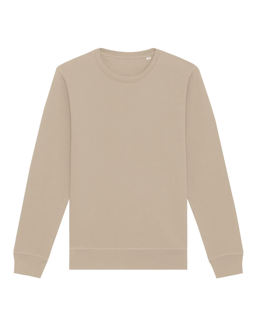 Materiál: 85% Organická, prstencová, česaná bavlna, 15% recyklovaný polyester; Kartáčovaná mikina, středně dlouhý střih, vsazené rukávy, žebrované lemy 1x1 u výstřihu, spodní lemy, vnitřní pásek na zádech se vzorem rybí kosti, plochý steh na všech švech, půlkruhový textilní materiál u zadní části na krku; Certifikáty: STANDARD 100 by OEKO-TEX®; GOTS - Global organic textile standard; Peta - Approved VEGAN; Fair wear