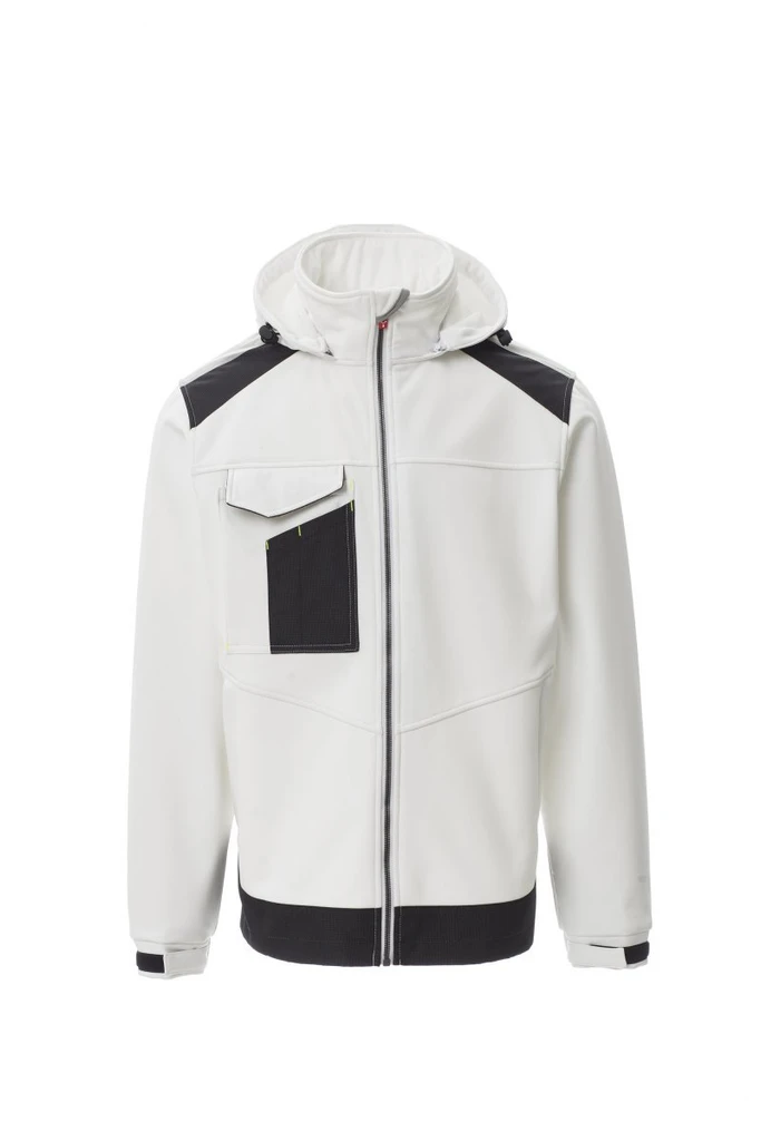WP/MM 8000 MVP/GR 5000 Pracovní sofshellová ergonomicky zpracovaná bunda, úzké rukávy, dlouhý plastový SBS zip (kovový jezdec s aretací "autolock"), dvě postranní kapsy na zip, víceúčelová kapsa na hrudi se skrytým pouzdrem na jmenovku a uzavírací klopou LOCK SYSTEM, reflexní pruhy 3M na ramenou, manžety s páskem na suchý zip, odnímatelná kapuce a stahovací šňůrka se zarážkou