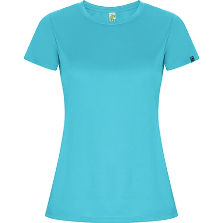 Dámské sportovní tričko s raglánovými rukávy s příměsí recyklovaného rychleschnoucího polyesteru, kulatý výstřih, zpevněné švy na průkrčníku, štítek s logem ECO na rukávu, přiléhavý střih, odnímatelný EKO štítek, samostatné balení v recyklovatelném balení, prodyšný a rychleschnoucí materiál, duo koncept