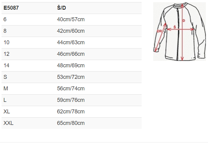 | Velikost extra | 6, 8, 10, 12, 14 |