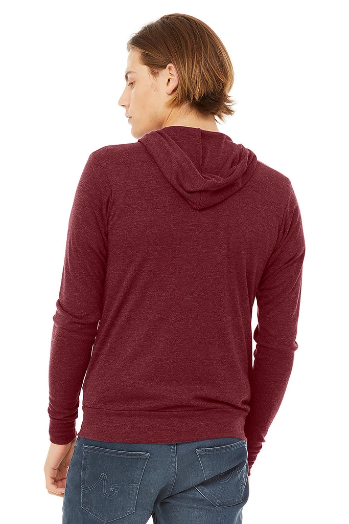 Tato unisex mikina na zip s kapucí ze tří směsí má moderní střih, kapuci, přední zip a klokaní kapsu, navrženou z rafinované žebrované tkaniny speciálně navržené s rovným povrchem ideálním pro potisk.