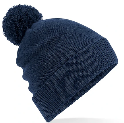 Žebrovaná manžeta, duální styl, jednobarevná bambule v barvě čepice, podšívka microfleece pro pohodlí a teplo, odtrhávací štítek pro snadnou změnu značky