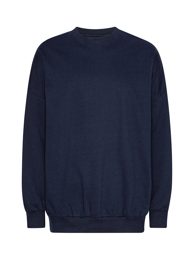 Mikina vyrobená z prstencové česané bavlny, nabízí moderní oversized střih se spadlými rameny pro pohodlný a stylový vzhled. Pletený nákrčník, manžety a pas poskytují odolnost, zatímco výstřih dodává klasický nádech.