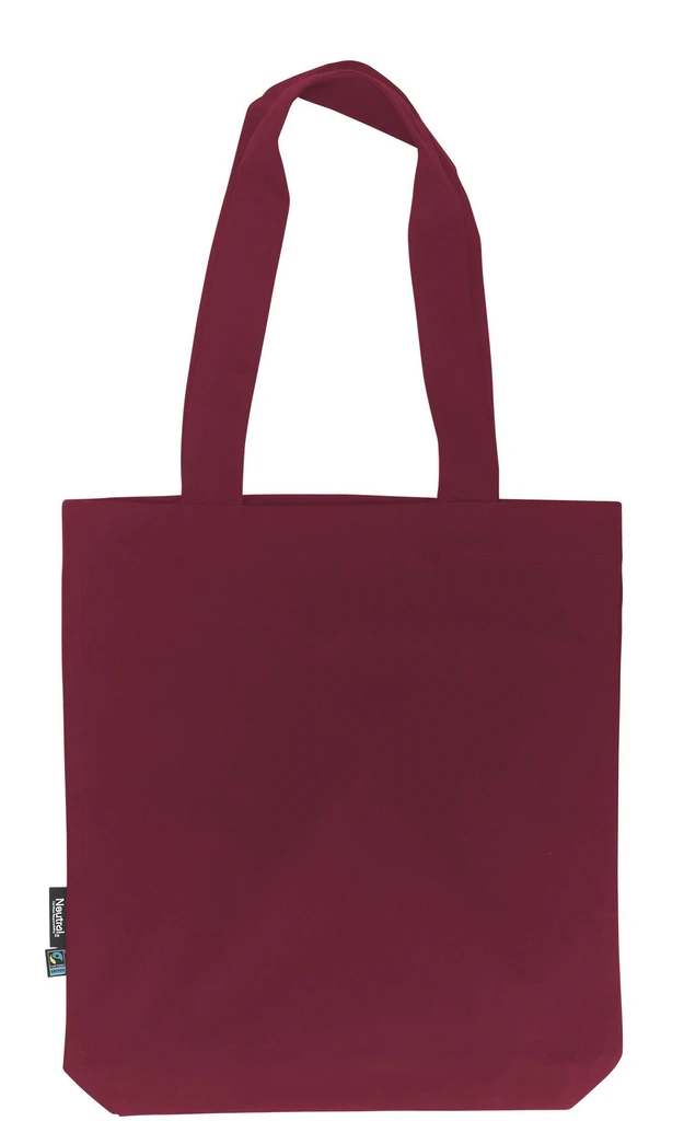 Materiál: 100% biobavlna "Fairtrade Cotton", keprová tkanina; Gramáž: 210 g/m²; Silnější pevná bavlna. Dlouhá ucha (66 cm), zpevněné dno. Zesílení v zatížených bodech. Rozměry: (š x v) 38 x 42 cm; Značky Neutral® a Fairtrade na straně; Certifikáty: OEKO-TEX® STANDARD 100, 100% CERTIFIED ORGANIC COTTON, FAIR WEAR, EU ECOLABEL, SA8000, NEUTRAL® RESPONSIBILITY