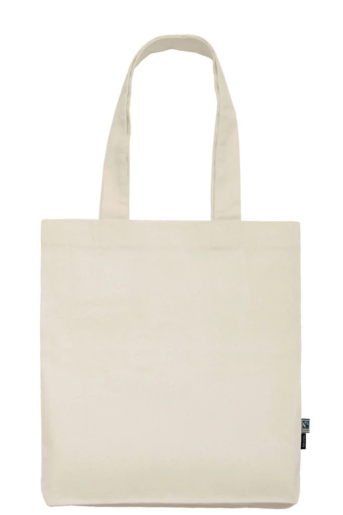 Materiál: 100% biobavlna "Fairtrade Cotton", keprová tkanina; Gramáž: 210 g/m²; Silnější pevná bavlna. Dlouhá ucha (66 cm), zpevněné dno. Zesílení v zatížených bodech. Rozměry: (š x v) 38 x 42 cm; Značky Neutral® a Fairtrade na straně; Certifikáty: OEKO-TEX® STANDARD 100, 100% CERTIFIED ORGANIC COTTON, FAIR WEAR, EU ECOLABEL, SA8000, NEUTRAL® RESPONSIBILITY