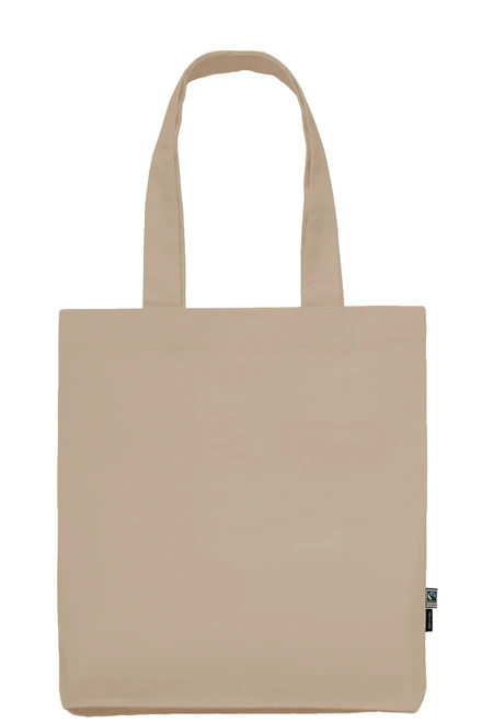 Materiál: 100% biobavlna "Fairtrade Cotton", keprová tkanina; Gramáž: 210 g/m²; Silnější pevná bavlna. Dlouhá ucha (66 cm), zpevněné dno. Zesílení v zatížených bodech. Rozměry: (š x v) 38 x 42 cm; Značky Neutral® a Fairtrade na straně; Certifikáty: OEKO-TEX® STANDARD 100, 100% CERTIFIED ORGANIC COTTON, FAIR WEAR, EU ECOLABEL, SA8000, NEUTRAL® RESPONSIBILITY