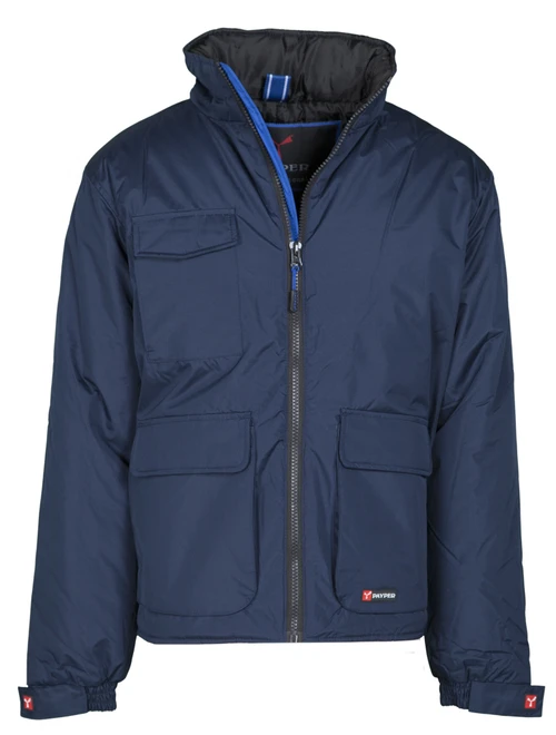 8 mm široký plastový zip, kovový jezdec, kapuce schovaná v límci, elastické manžety, 2 prostorné kapsy se speciálním zavíracím systémem, 2 boční kapsy, kapsa na hrudi na mobilní telefon, vatová vycpávka