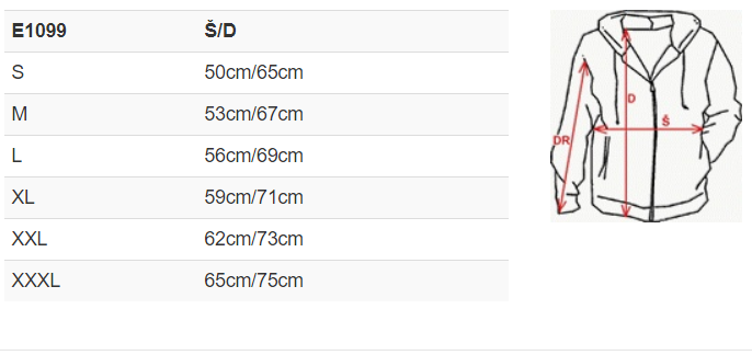 | Velikost | S, M, L, XL, 2XL, 3XL |