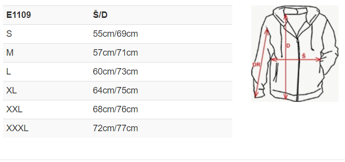 | Velikost | S, M, L, XL, 2XL, 3XL |