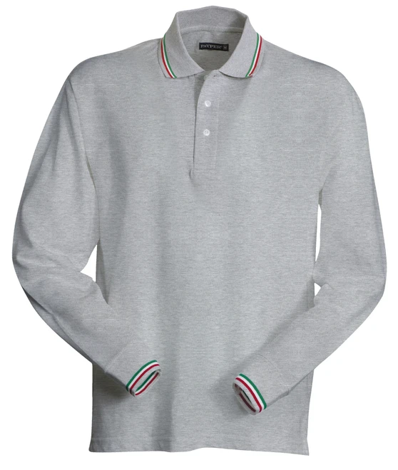 Dlouhý rukáv, léga s 3 bílými knoflíky, kontrastní lemování na límci a rukávu (motiv italské vlajky), žebrování na límci a manžetách, boční rozparky s vyztuženými švy, boční výztužná páska, elastické švy, výztužná páska za krkem