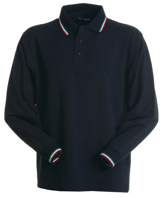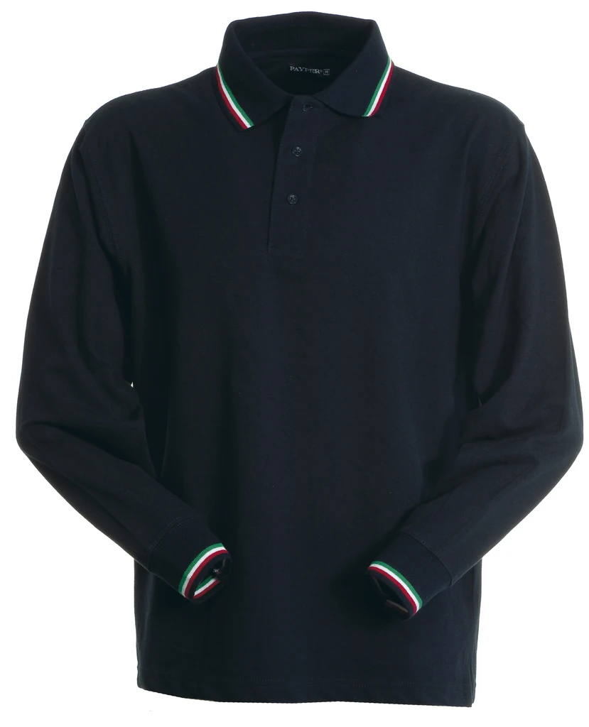 Dlouhý rukáv, léga s 3 bílými knoflíky, kontrastní lemování na límci a rukávu (motiv italské vlajky), žebrování na límci a manžetách, boční rozparky s vyztuženými švy, boční výztužná páska, elastické švy, výztužná páska za krkem