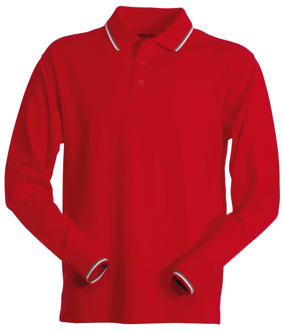 Dlouhý rukáv, léga s 3 bílými knoflíky, kontrastní lemování na límci a rukávu (motiv italské vlajky), žebrování na límci a manžetách, boční rozparky s vyztuženými švy, boční výztužná páska, elastické švy, výztužná páska za krkem