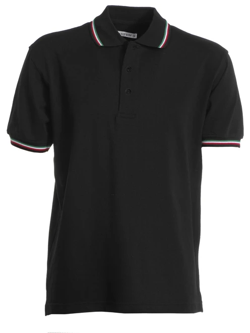 Krátký rukáv, léga s 3 bílými knoflíky, kontrastní lemování na límci a rukávu (motiv italské vlajky), žebrování na límci a manžetách, boční rozparky s vyztuženými švy, boční výztužná páska, elastické švy, výztužná páska za krkem