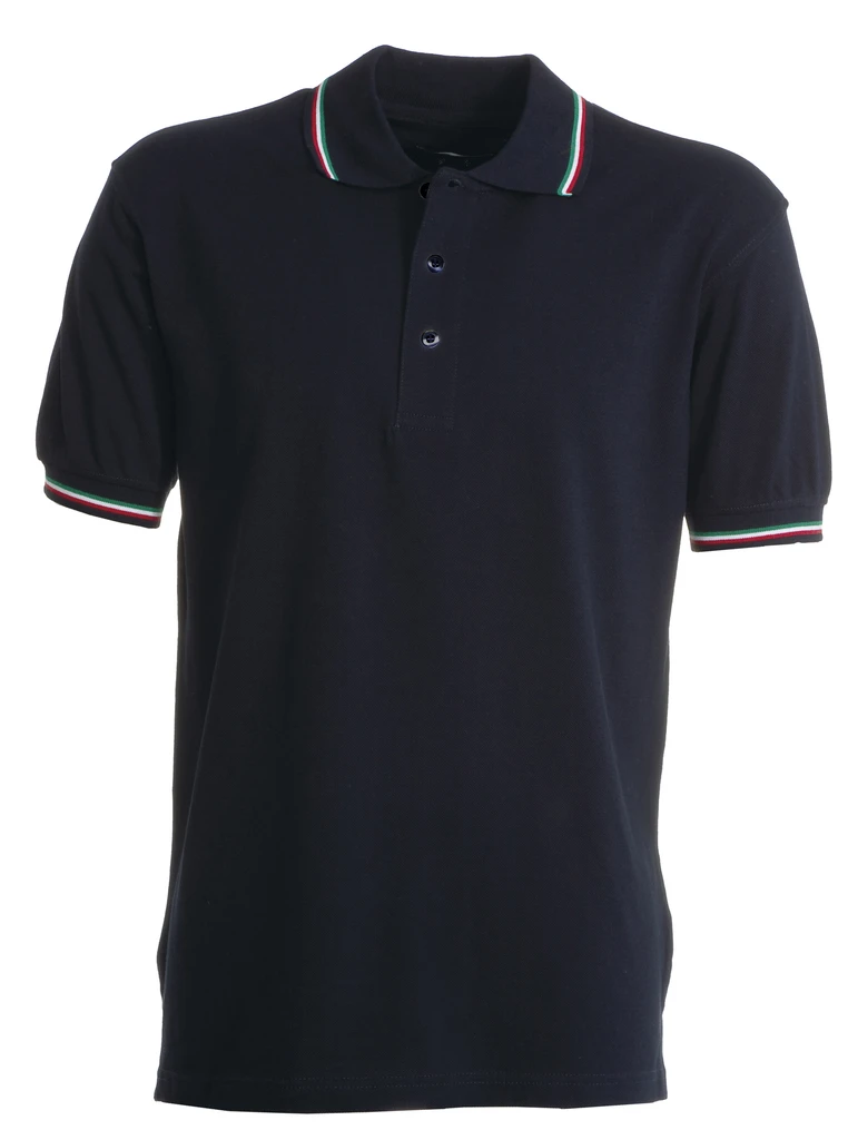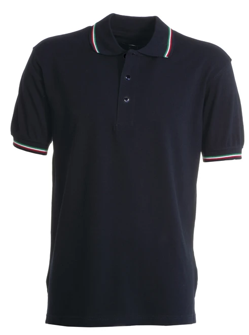 Krátký rukáv, léga s 3 bílými knoflíky, kontrastní lemování na límci a rukávu (motiv italské vlajky), žebrování na límci a manžetách, boční rozparky s vyztuženými švy, boční výztužná páska, elastické švy, výztužná páska za krkem