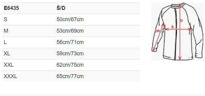 | Velikost | S, M, L, XL, 2XL, 3XL |