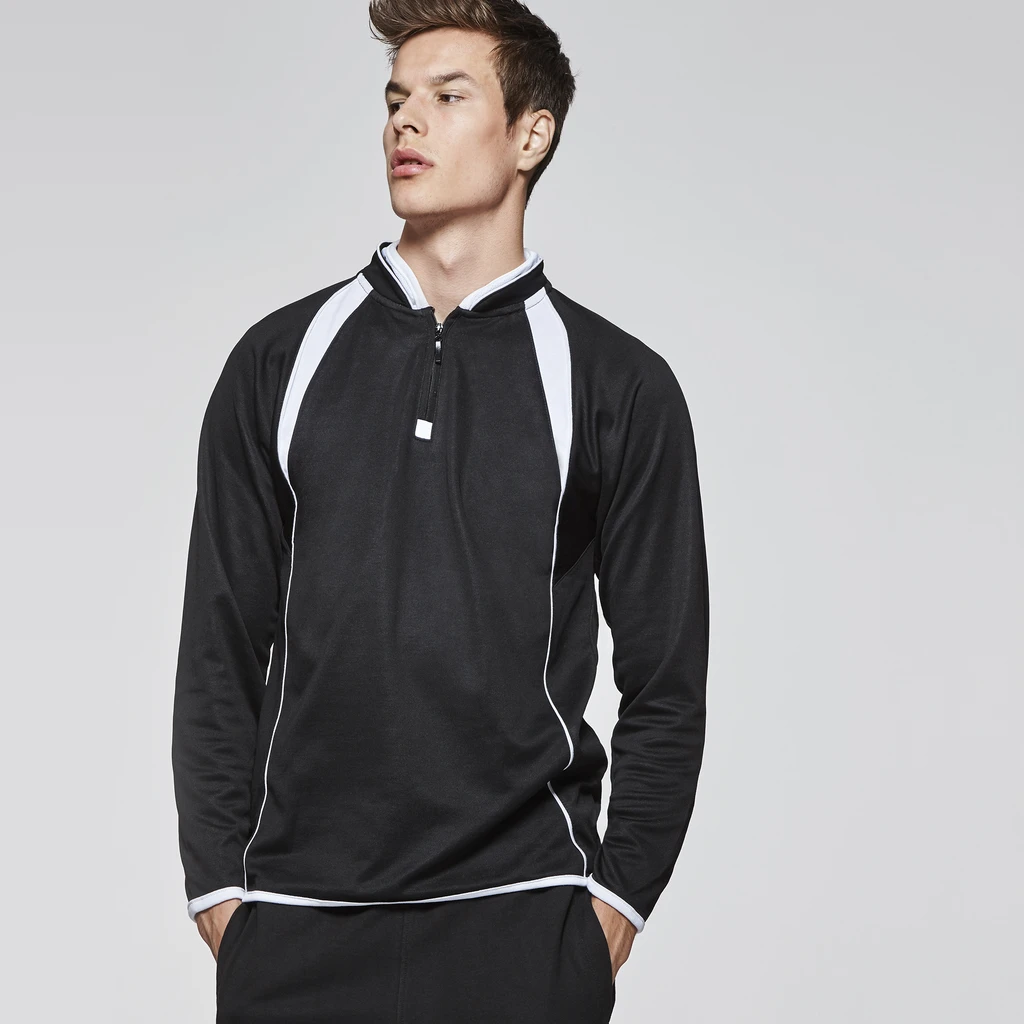 Kontrastní kombinace barev, uvnitř počesaná, krátký zip a dvojitý límec, raglánové rukávy, žebrovaný spodní lem a manžety, odnímatelná cedulka, vhodné pro potisk sublimací, dostupné i v dětských velikostech.