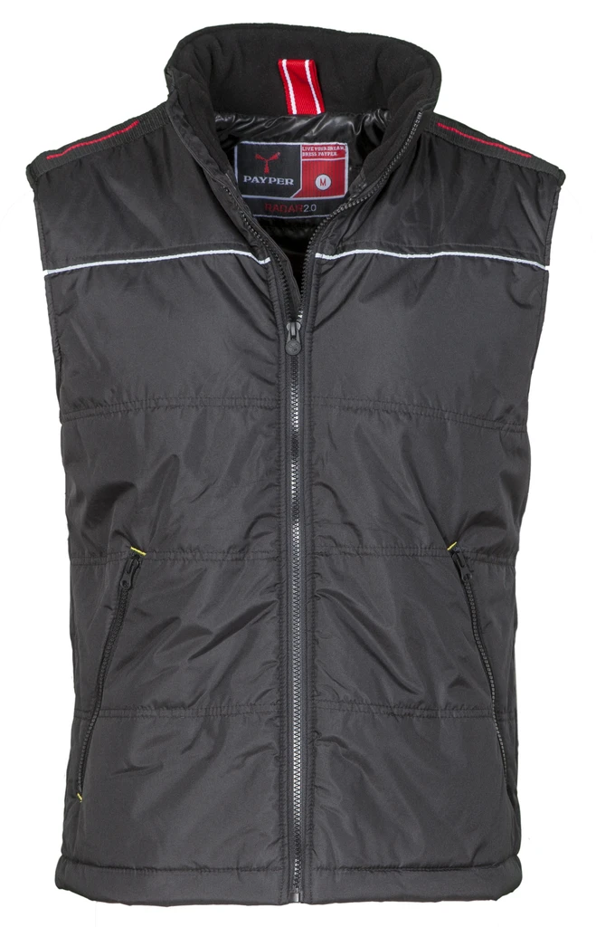 Po celé délce černý 5 mm široký plastový zip, kovový jezdec, 2 prostorné vnější kapsy na zip, vnitřní kapsa, reflexní lemování na hrudi a zádech, vatová vycpávka, podšívka na límci z fleecu