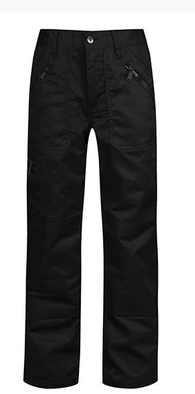 Částečně elastický pas s poutky na pásek, zapínání na kovový knoflík a zip, zesílený šev v rozkroku, 2 přední kapsy na zip, 1 s malou kapsičkou na mince, 2 zadní kapsy, 1 boční kapsa na zip, zesílené švy s trojitým prošíváním