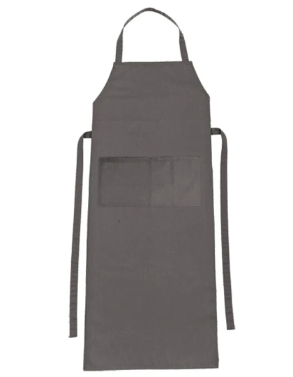 Klasická zástěra s laclem a nakládanou kapsou (rozdělena do dvou sekcí - každá má 20 x 20 cm), lze prát na 95°C, vázačka ze stejného materiálu, vázačka zpevněná v namáhaných místech, pásku za krkem lze nastavit, nemačkavý materiál, snadno se čistí, stálobarevná.