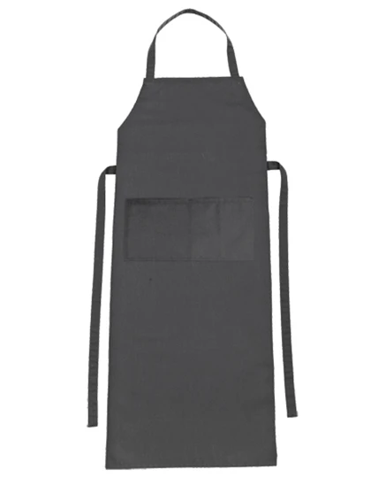Klasická zástěra s laclem a nakládanou kapsou (rozdělena do dvou sekcí - každá má 20 x 20 cm), lze prát na 95°C, vázačka ze stejného materiálu, vázačka zpevněná v namáhaných místech, pásku za krkem lze nastavit, nemačkavý materiál, snadno se čistí, stálobarevná.