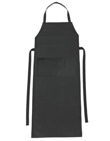 Klasická zástěra s laclem a nakládanou kapsou (rozdělena do dvou sekcí - každá má 20 x 20 cm), lze prát na 95°C, vázačka ze stejného materiálu, vázačka zpevněná v namáhaných místech, pásku za krkem lze nastavit, nemačkavý materiál, snadno se čistí, stálobarevná.